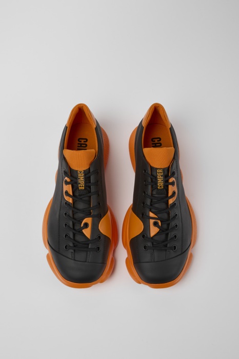 Camper Be Karst Chaussures En Cuir Noir Et Orange Pour Hommes Nouveautés