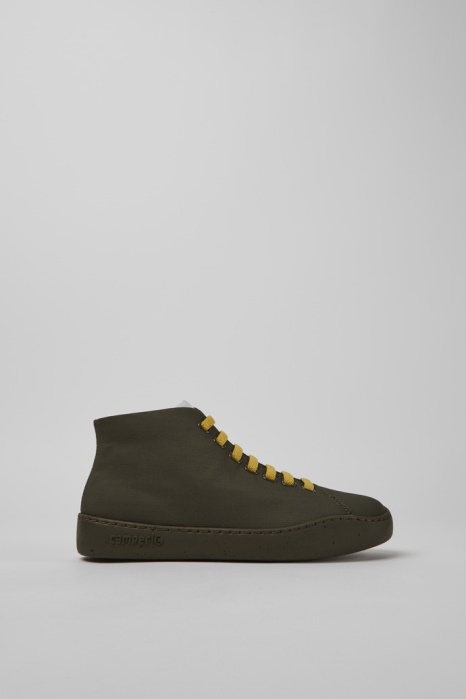 Bottines Pour Femme En Textile Vert Avec Une Tige 80% PET Recyclé, Des Semelles Extérieures Contrastées En EVA, Une Assise Plantaire OrthoLite® Recyclée Et Des Lacets élastiques.Peu Touring Est Une Version Plus Sportive De Notre Emblématique Peu, Rehaussée D'améliorations Techniques Et D'une Courbe Reconnaissable Sur La Semelle Extérieure.