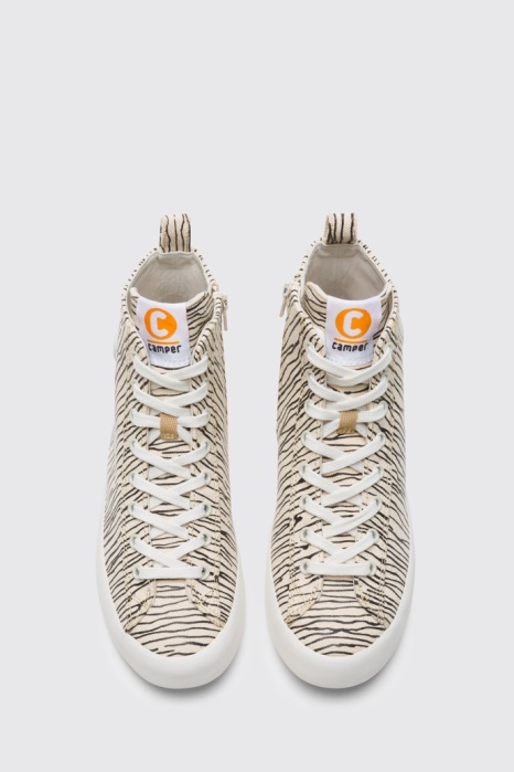 Botte Multicolore Pour Femme. Tige Beige Et Noire En 100% Coton Naturel, Avec Lacets. Semelle Extérieure 100% Caoutchouc Blanche.Notre Imar Copa Est Une Réinterprétation D'un Classique, Rehaussée Par Une Mise À Niveau Sportive.