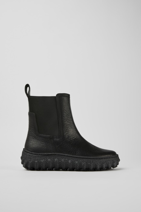 Bottines Pour Femme En Cuir Noir Avec Assise Plantaire OrthoLite® Recycled™ Et Semelle Extérieure En Caoutchouc Michelin (27 % Naturel). Ground Réinvente Le Style De Rue Urbain En Ajoutant Une Touche Contemporaine À L'esthétique Industrielle Camper.