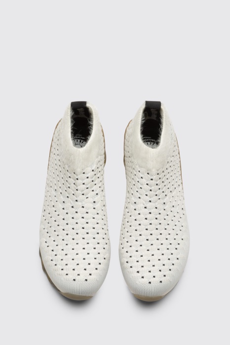 Bottines Baskets Blanches Pour Femme Avec Semelle Extérieure En Zigzag. Le Créateur De Mode Allemand Bernhard Willhelm Revient Pour Célébrer Le 10e Anniversaire D'Himalayan, Sa Collaboration Signature Together Avec Des Traitements Inattendus Et Une Semelle Extérieure En Zigzag Unique.