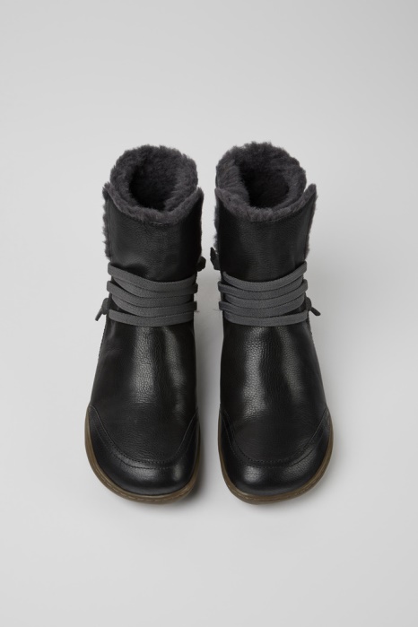 Botte Mi-haute Gris Foncé Pour Femme. Cuir Pleine Fleur Avec Lacets élastiques Et Semelle Extérieure En TPU. Nos Chaussures Pour Femmes Peu Sont Modelées Sur La Forme Du Pied Avec Une Silhouette Unique Qui Conserve Tous Les Avantages De La Marche Pieds Nus.