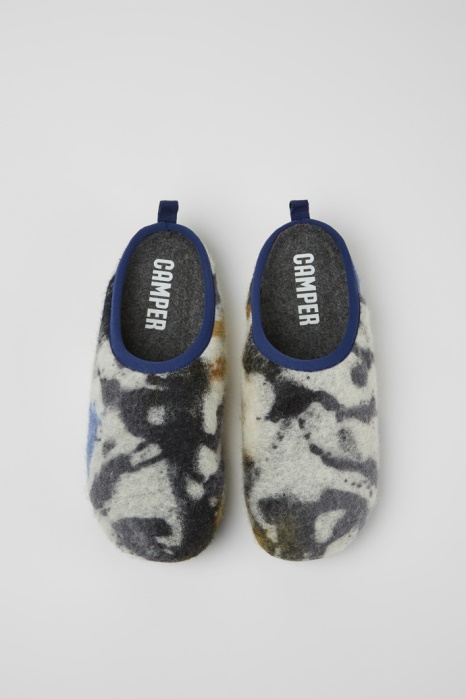 Chaussons Exclusifs Camper Be Wabi En Laine Recyclée Bleu Et Noir Pour Homme