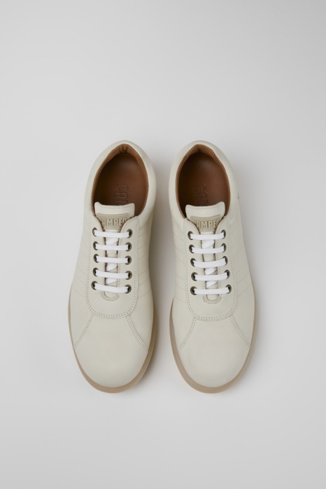 Chaussure Blanche Pour Homme. Tige En Cuir Avec Lacets Beiges. Semelle Extérieure 100 % Caoutchouc Beige.Un Peu Mieux, Jamais ParfaitNos Chaussures Pour Hommes Pelotas Sont Notre Style Camper Le Plus Emblématique. Avec Une Semelle Extérieure D'inspiration Sportive Unique Composée De 87 Sphères, Notre Pelotas - L'espagnol Pour "balles" - Continue De Changer Le Jeu Chaque Saison Tout En Restant Fidèle à Ses Racines.