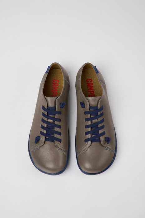 Chaussures Pour Hommes En Cuir Gris Avec Semelles Intérieures Amovibles En PU Et Semelles Extérieures En TPU (recyclé à 20%). Une Icône Camper Qui évolue à Chaque Saison. Peu Est Une Simplicité Fonctionnelle Inspirée De La Marche Pieds Nus. Il Est Cousu À 360 Degrés Et Construit Avec Une Technique De Construction Strobel, Garantissant Un Flex Et Une Durabilité Inégalés Dans Toutes Les Conditions.