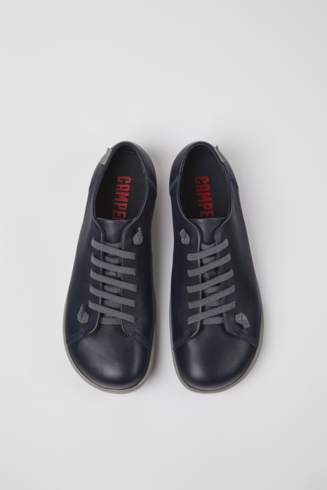 Chaussures Pour Hommes En Cuir Bleu Avec Semelles Intérieures Amovibles En PU Et Semelles Extérieures En TPU (recyclé à 20%). Une Icône Camper Qui évolue à Chaque Saison. Peu Est Une Simplicité Fonctionnelle Inspirée De La Marche Pieds Nus. Il Est Cousu À 360 Degrés Et Construit Avec Une Technique De Construction Strobel, Garantissant Un Flex Et Une Durabilité Inégalés Dans Toutes Les Conditions.