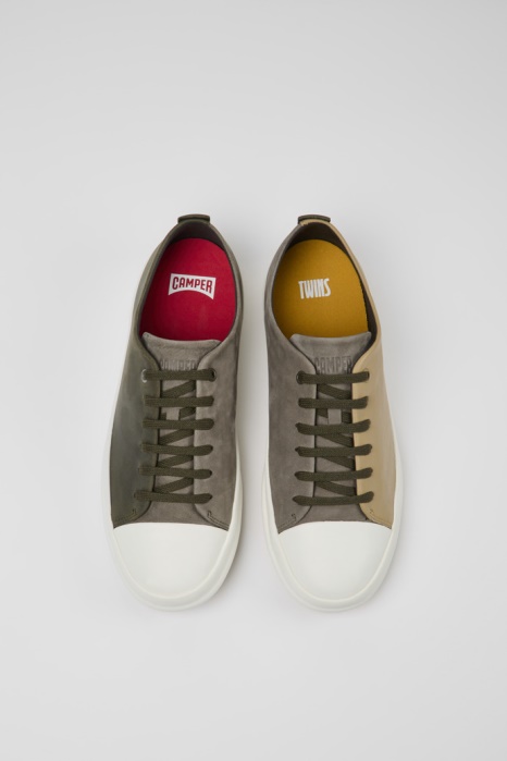 Twins Marron-gris Et Vert Chaussures En Cuir Pour Hommes Camper Be Nouveautés