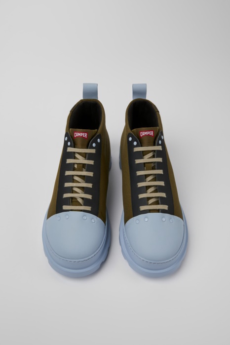Chaussures Pour Hommes En Coton Et Cuir Recyclés Verts, Bleus Et Noirs Avec Semelle Extérieure XL EXTRALIGHT. Original De Camper Depuis 1986, Brutus Est Notre Style Urbain Avec Une Technologie Légère Et Des Coutures à 360' Durables.