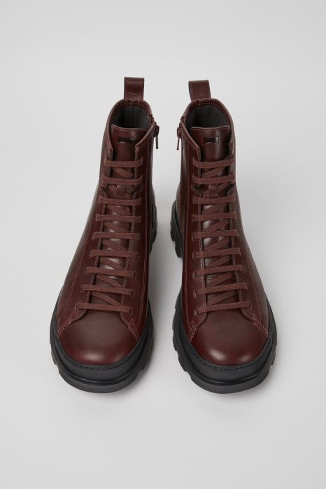 Exclusivité Camper Be Brutus Bottines à Lacets En Cuir Bordeaux