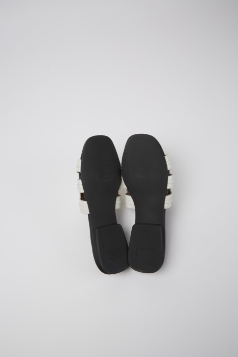 Sandale Femme En Cuir Blanc Avec Semelle Extérieure 100% TPU (20% Recyclé). Notre Ligne Féminine Casi Myra Présente Un Design Intemporel Avec Une Forme Légèrement Carrée.