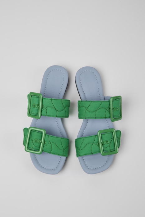 Sandales Vertes Pour Femme En PET 100% Recyclé Avec Semelle Extérieure 100% TPU (20% Recyclé). Notre Ligne Féminine Casi Myra Présente Un Design Intemporel Avec Une Forme Légèrement Carrée.
