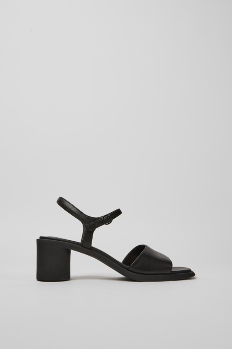 Sandales Pour Femme En Cuir Noir Avec Semelle Extérieure En Caoutchouc (recyclé à 20%). Redéfinissant Le Style Urbain, Meda Présente Un Design Ludique Qui Une Touche Amusante Et Inattendue À Un Talon Classique.