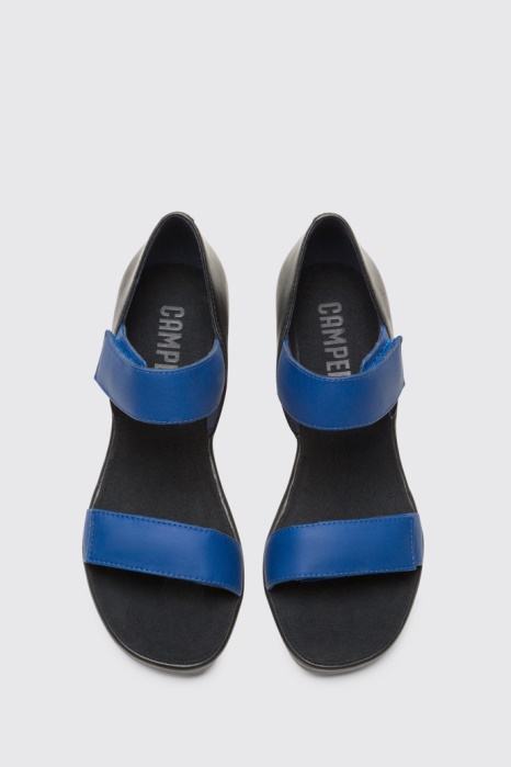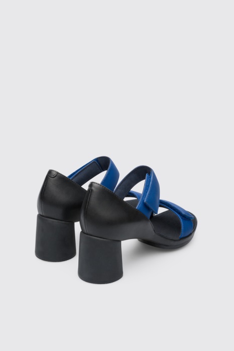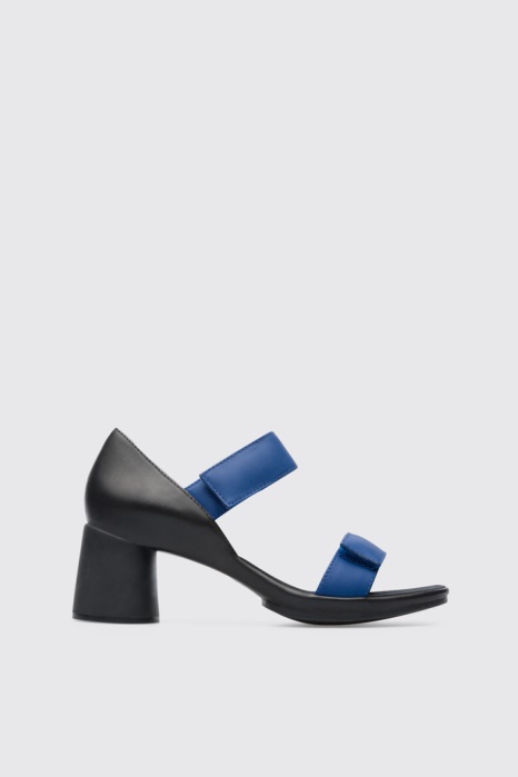 Sandale Pour Femme Pleine Fleur Noire Et Bleue Avec Semelle Extérieure En Caoutchouc.Avec Des Cuirs élégants Et Le Système Easy Wear, La Nouvelle Sandale Upright Est Le Compagnon Idéal Des Journées D'été.