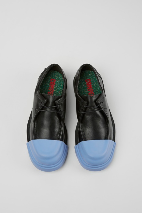 Chaussures Pour Femmes En Cuir Noir Avec Embouts Amovibles, Semelles Intérieures OrthoLite® Recycled™ Et Semelles Extérieures En Caoutchouc (40 % Naturel, 23 % Recyclé). Fabriquée Avec Un Minimum De Composants Et De Colle, Junction Est Facile à Démonter, Favorisant Une Approche Plus Circulaire De La Fabrication De Chaussures.
