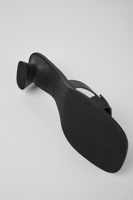 Sandales Pour Femme En Cuir Noir Avec Semelle Extérieure En Caoutchouc. Dina Fait Partie De Nos Lignes De Sandales à Petit Talon à L'esprit Insouciant. Il A Un Design Féminin Qui, Bien Que Robuste Et Résistant, Peut Facilement Être Identifié Avec Le Style Camper De Chaussures Pour Femmes. Sa Forme De Chaussure Large Et Légèrement Carrée Est Combinée Dans Différents Modèles Avec Des Nœuds De Style Fait Main Et Des Sangles Croisées.