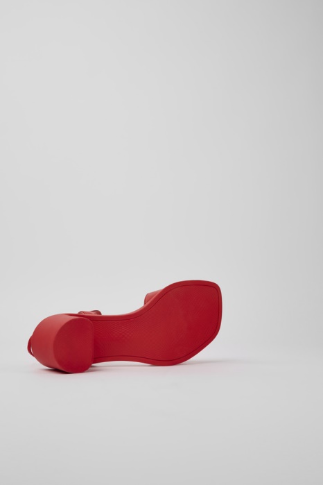 Sandales Pour Femmes En Cuir Rouge Avec Semelle Extérieure En Caoutchouc (recyclé à 20%). Redéfinissant Le Style Urbain, Meda Présente Un Design Ludique Qui Une Touche Amusante Et Inattendue À Un Talon Classique.
