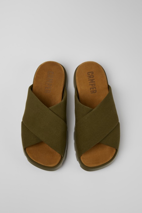 Sandales Vertes Pour Hommes 100 % Coton Recyclé Avec Semelle Extérieure XL EXTRALIGHT® 100 % EVA. Nouvelle Venue Dans La Famille Brutus Emblématique De Camper, Cette Sandale Minimaliste Présente Des Matériaux Naturels Et Une Semelle Extra Légère.