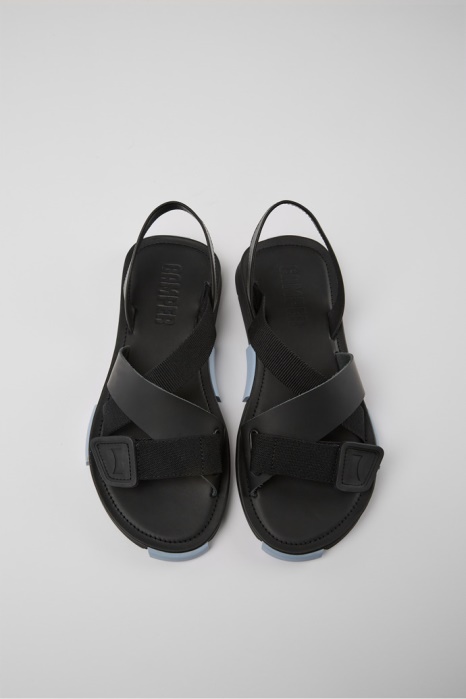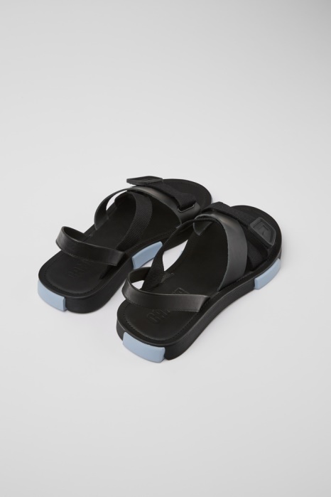 Sandales Pour Hommes En Cuir Noir Et Sangles En PET Recyclé Avec Semelle Extérieure En EVA Et Caoutchouc (recyclé à 20%) Et Système De Fermeture Auto-agrippant. Notre Ensemble Est Un Style Léger Avec Des Sangles Multi-matériaux Fabriquées Avec Des Matériaux Recyclés Qui Soutiennent Le Pied Et La Planète.