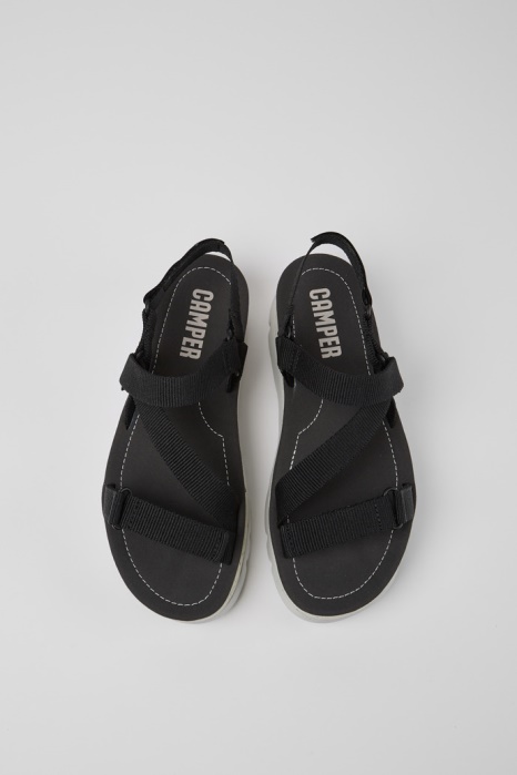 Sandales Noires Pour Femme En Toile PET Recyclé Avec Semelle Intermédiaire 100% EVA (20% Recyclé), Semelle Extérieure XL EXTRALIGHT® (51% Recyclé) Et Système De Fermeture Auto-agrippant. Nos Sandales Oruga Up Ont été Conçues Pour Les Journées D'été Et Disposent D'une Semelle Épaisse Caractéristique Pour Plus De Hauteur Et Un Look Unique.