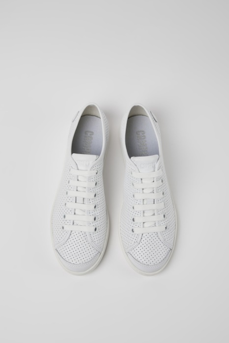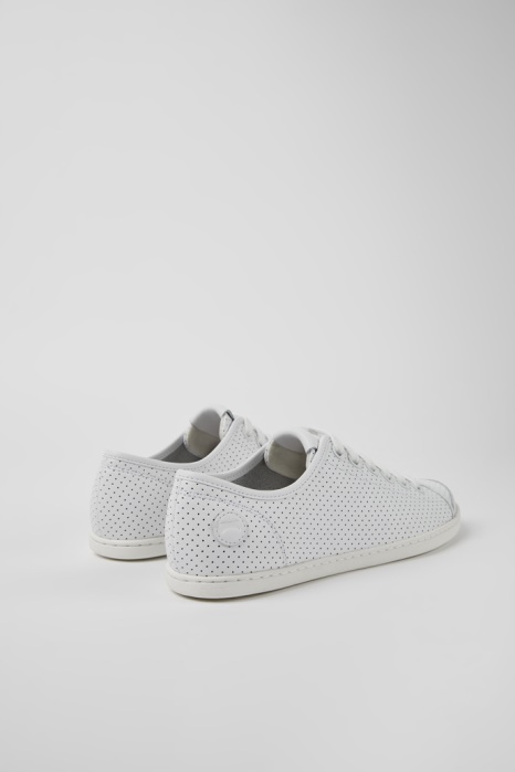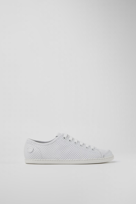 Baskets Pour Femme En Cuir Blanc Avec Assise Plantaire Amovible OrthoLite® Recycled™ Et Semelle Extérieure En Caoutchouc. Nos Baskets Basses Uno Présentent Une Silhouette élégante Et Une Tige En Cuir Perforé Respirant.