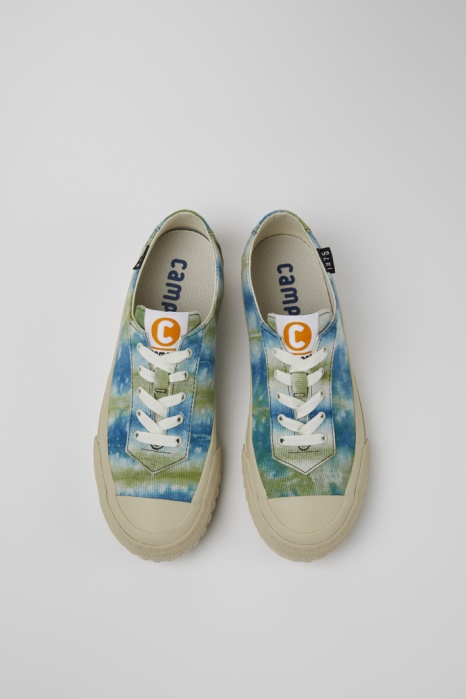 Baskets Multicolores Pour Femmes 100% Coton Biologique Avec Dessus En Textile Tie-dye Réalisées En Collaboration Avec Ethical Fashion Initiative. Semelle Extérieure Composée De 23 % De Caoutchouc Recyclé Et De 40 % De Caoutchouc Naturel. Camaleon, La Toute Première Chaussure De Camper, Incarne La Simplicité Et L'ingéniosité De Son Héritage Méditerranéen. Inspiré Des Chaussures Rustiques Portées Il Y A Plus D'un Siècle, Camaleon Propose Une Façon Plus Respectueuse De Marcher Et D'explorer.