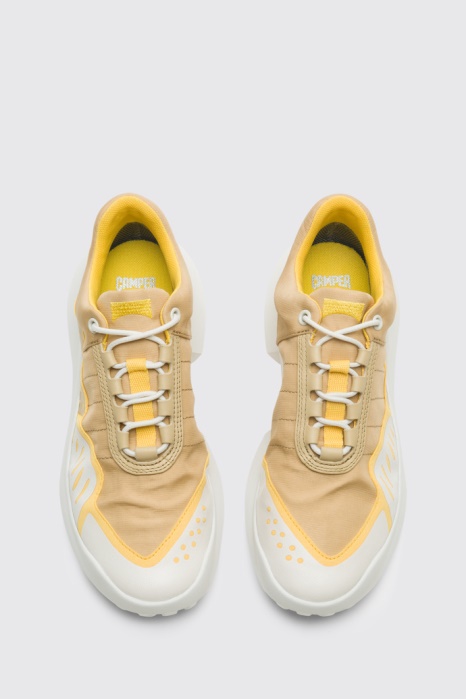 Baskets Multicolores Avec Technologie GORE-TEX Surround® Pour Femme. Tige Beige Et Blanche Avec Détails Jaunes. Avec Des Lacets Et Une Semelle Extérieure 100 % EVA Blanche. Inspirées Des Pneus De Vélo, Ces Baskets Sont Notre Style Le Plus Avancé Et Futuriste à Ce Jour. Utilisant Une Combinaison Unique De Matériaux, Le Style Multicouche Comprend Une Semelle Emblématique XL EXTRALIGHT® Avec Un Rembourrage Supplémentaire Et Des Semelles Intérieures OrthoLite®. Avec La Technologie Gore-Tex Surround®, Ces Baskets Sont Très Respirantes.