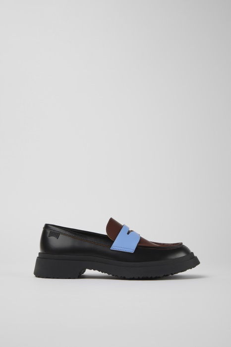 Mocassins Pour Femme En Cuir Noir Avec Détails Colorés Et Semelle Extérieure En Caoutchouc. Né En 1988, Notre Concept TWINS Défie L'idée Que Les Chaussures Doivent être Identiques, En Présentant Des Styles Dépareillés Qui Sont Vraiment Uniques.