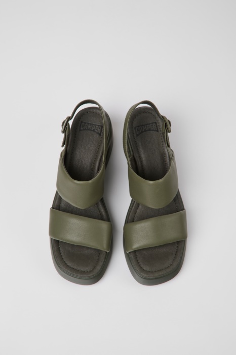 Sandales Pour Femmes En Cuir Vert Avec Semelles Intérieures Non Amovibles OrthoLite® Recycled ™ Et Semelles Extérieures En PU.Avec Un Design Audacieux Et Contemporain Inspiré Du Futurisme Et Du Brutalisme, Nos Sandales Kaah Offrent Une Touche Ludique Au Style Avant-gardiste.