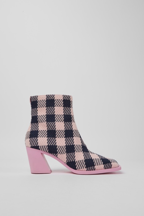 Bottines Pour Femme En Coton Rose Et Noir (60% Recyclé) Avec Semelle Extérieure En Caoutchouc (20% Recyclé). Notre Talon Karole Se Caractérise Par Une Silhouette Féminine Distinctive Et Un Bout Carré Prononcé Avec Une Semelle Extérieure Solide Et Saillante.
