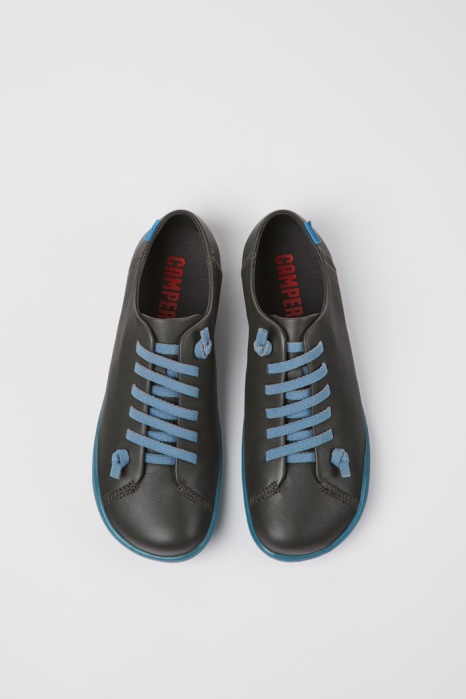 Chaussures Pour Femmes En Cuir Gris Foncé Avec Semelles Intérieures Amovibles En PU Et Semelles Extérieures En TPU (recyclé à 20%). Une Icône Camper Qui évolue à Chaque Saison. Peu Est Une Simplicité Fonctionnelle Inspirée De La Marche Pieds Nus. Il Est Cousu À 360 Degrés Et Construit Avec Une Technique De Construction Strobel, Garantissant Un Flex Et Une Durabilité Inégalés Dans Toutes Les Conditions.