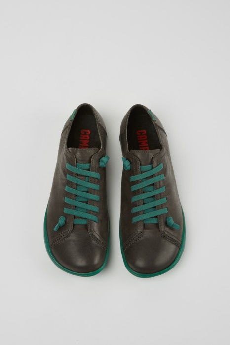 Chaussures Pour Femmes En Cuir Gris Avec Semelle Extérieure En TPU (recyclé à 20%). Icône Camper Qui Évolue À Chaque Saison, Peu Offre Une Simplicité Fonctionnelle Inspirée De La Marche Pieds Nus. Il Est Cousu À 360 Degrés Et Construit Avec Une Technique De Construction Strobel, Garantissant Un Flex Et Une Durabilité Inégalés Dans Toutes Les Conditions.