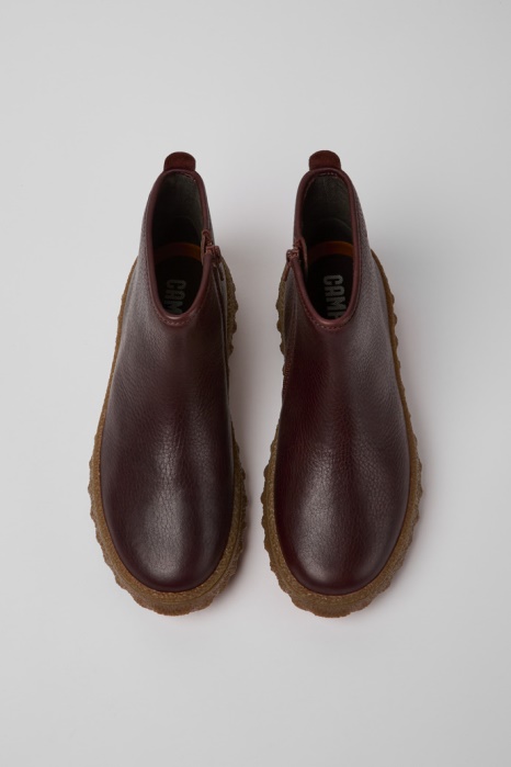Bottines Pour Femme En Cuir Bordeaux Avec Semelle Extérieure En Caoutchouc Michelin à 27 % Naturel. Ground Réinvente Le Style De La Rue Urbaine En Ajoutant Une Touche Contemporaine À L'esthétique Industrielle Camper. La Semelle Extérieure épaisse Est En Caoutchouc Naturel Qui Offre Une Adhérence Supérieure.