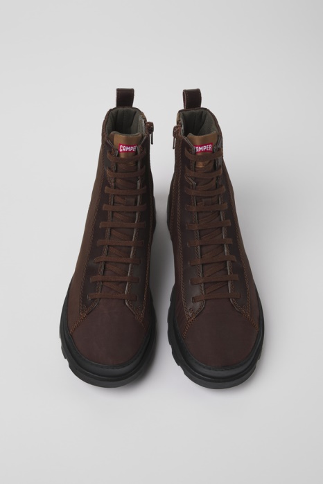 Bottines Pour Homme En Textile Et Cuir Marron Avec Membranes Primaloft Recyclées Et Semelles Extérieures XL EXTRALIGHT Sustainable + (recyclées à 51%). Un Camper Original Depuis 1986 Avec Un Design Urbain Emblématique. Brutus Est Durable Grâce à Des Coutures à 360' Et Dispose D'une Technologie Légère.