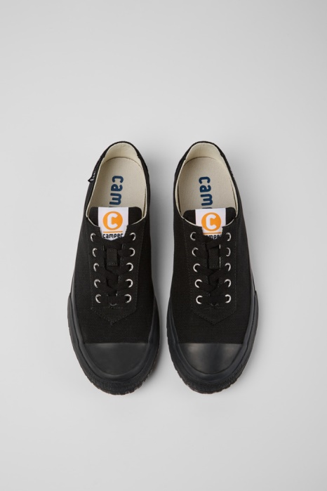 Baskets Noires Pour Homme En 100% Coton Recyclé Avec Semelle Extérieure En Caoutchouc 23% Recyclé Et 40% Caoutchouc Naturel. .Camaleon, La Toute Première Chaussure De Camper, Incarne La Simplicité Et L'ingéniosité De Son Héritage Méditerranéen. Inspiré Des Chaussures Rustiques Portées Il Y A Plus D'un Siècle, Camaleon Propose Une Manière Plus Respectueuse De Marcher Et D'explorer.