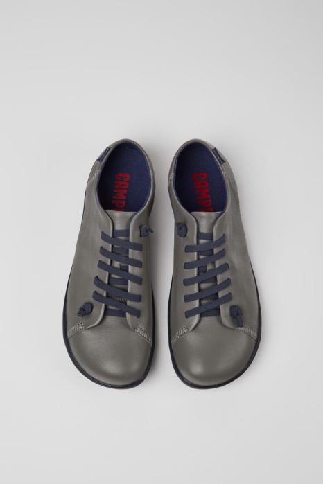 Chaussures Pour Hommes En Cuir Gris Avec Semelle Extérieure En TPU (recyclé à 20%). Icône Camper Qui Évolue À Chaque Saison, Peu Offre Une Simplicité Fonctionnelle Inspirée De La Marche Pieds Nus. Il Est Cousu À 360 Degrés Et Construit Avec Une Technique De Construction Strobel, Garantissant Un Flex Et Une Durabilité Inégalés Dans Toutes Les Conditions.