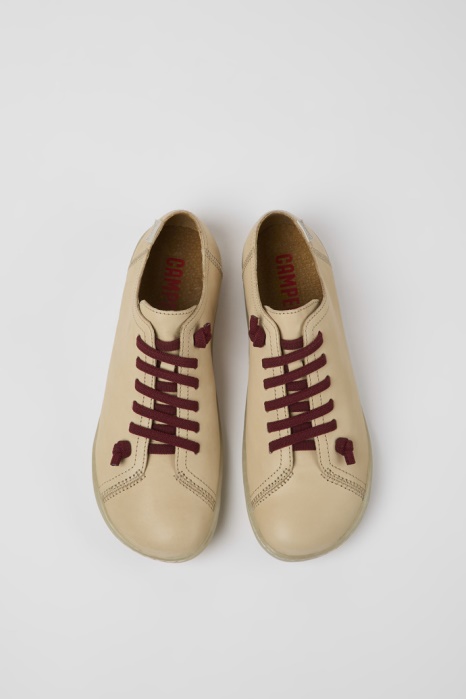 Chaussures Pour Femmes En Cuir Beige Avec Semelles Intérieures Amovibles En PU Et Semelles Extérieures En TPU (recyclé à 20%). Une Icône Camper Qui évolue à Chaque Saison. Peu Est Une Simplicité Fonctionnelle Inspirée De La Marche Pieds Nus. Il Est Cousu À 360 Degrés Et Construit Avec Une Technique De Construction Strobel, Garantissant Un Flex Et Une Durabilité Inégalés Dans Toutes Les Conditions.