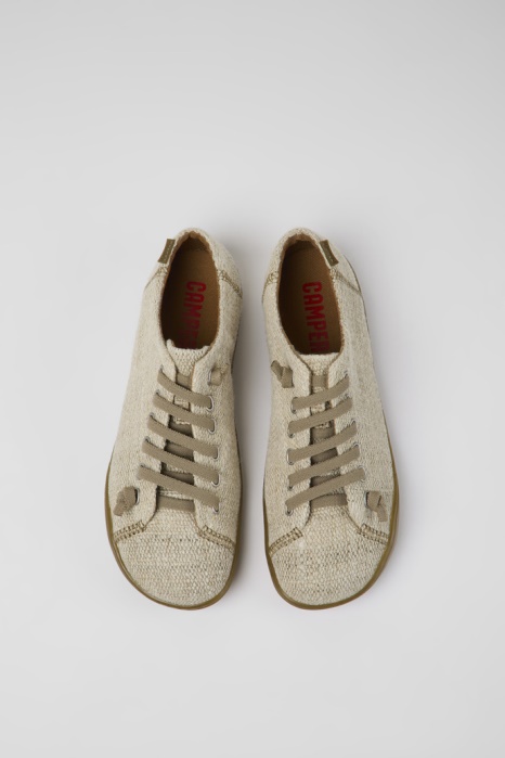 Chaussures Pour Femmes Beiges Avec Dessus En Chanvre Régénérateur Teint Naturellement, Semelles Intérieures En PU Amovibles Et Semelles Extérieures En TPU (recyclé à 20%). Le Chanvre Régénérant Est Entièrement D'origine, Traité, Tissé À La Main Et Teint À 100% Naturellement Par Des Artisans Du Commerce Équitable À Katmandou, Au Népal. Dérivé De La Plante De Cannabis Sativa Qui Pousse De Manière Biologique Dans L'Himalaya, Le Chanvre Régénératif Pousse Avec Un Minimum D'eau Et Sans Graines, Herbicides, Pesticides Ou Autres Produits Chimiques. Une Icône Camper Qui évolue à Chaque Saison. Peu Est Une Simplicité Fonctionnelle Inspirée De La Marche Pieds Nus. Il Est Cousu À 360 Degrés Et Construit Avec Une Technique De Construction Strobel, Garantissant Un Flex Et Une Durabilité Inégalés Dans Toutes Les Conditions.