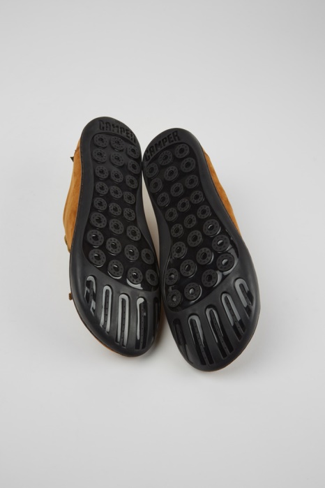 Chaussures Pour Femmes En Nubuck Marron Avec Semelle Claire Extérieure En TPU (recyclé à 20%). Icône Camper Qui Évolue À Chaque Saison, Peu Offre Une Simplicité Fonctionnelle Inspirée De La Marche Pieds Nus. Il Est Cousu À 360 Degrés Et Construit Avec Une Technique De Construction Strobel, Garantissant Un Flex Et Une Durabilité Inégalés Dans Toutes Les Conditions.
