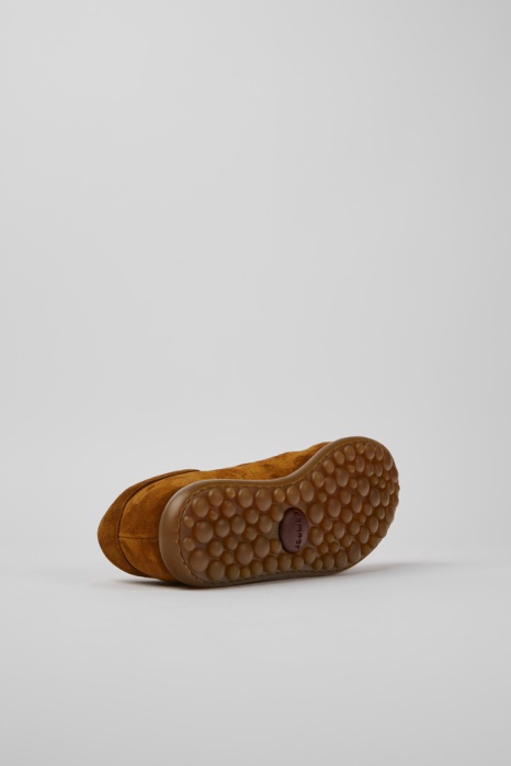 Baskets Pour Femme En Nubuck Marron Avec Semelle Extérieure En Caoutchouc. Pelote Ariel Est Notre Style Camper Le Plus Emblématique. Avec Une Semelle Extérieure D'inspiration Sportive Unique Composée De 87 Sphères, Chaque Paire Est Fabriquée À La Main À Partir De Cuirs Européens Cousus À 360° Sur La Semelle Extérieure En Caoutchouc D'origine.