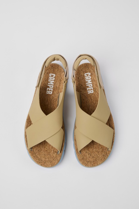 Sandales Pour Femme En Cuir Et Textile Beiges Avec Semelle Extérieure XL EXTRALIGHT® Organix™ 3.0 (composés Bio-circulaires à 30%). En Espagnol, "chenille", Nos Sandales Pour Homme Oruga Offrent Des Semelles Souples Et Légères Et Un Look Estival Urbain.