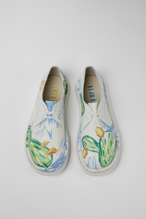 Twins Chaussures En Cuir Imprimé Blanc Pour Femme Exclusive Camper Be