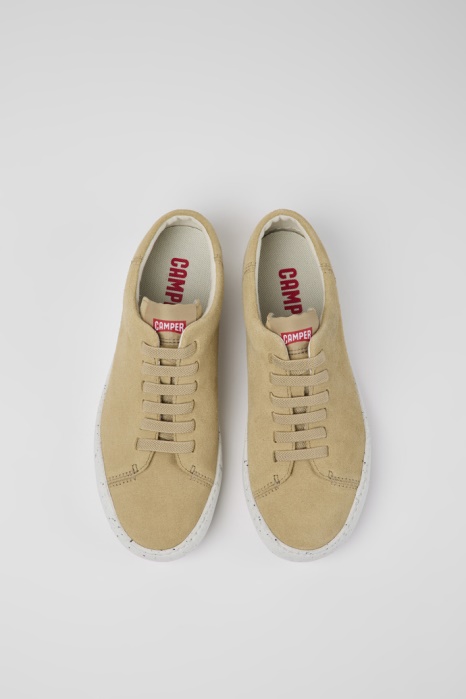 Baskets Femme En Nubuck Beige Avec Semelle 100% EVA (20% Recyclé). Peu Touring Est Une Version Plus Sportive De Notre Emblématique Peu, Enrichie D'améliorations Techniques Et D'une Courbe Reconnaissable Sur La Semelle Extérieure.