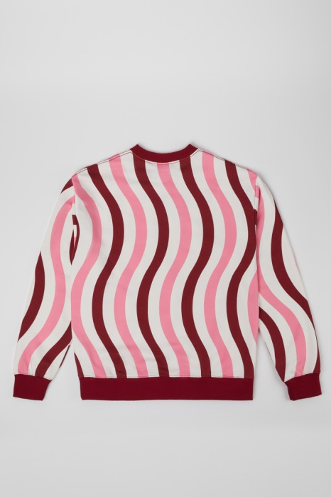 Pull Unisexe En Coton Bio Blanc, Rose Et Bordeaux à Rayures Ondulées.